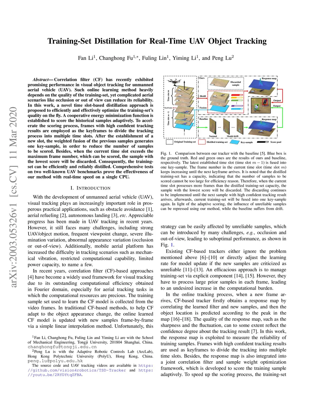 Correlation filter (CF) has recently exhibited promising performance in visual object tracking for unmanned aerial vehicle (UAV). Such online learning method heavily depends on the quality of the training-set, yet complicated aerial scenarios like occlusion or out of view can reduce its reliability. In this work, a novel time slot-based distillation approach is proposed to efficiently and effectively optimize the training-set's quality on the fly. A cooperative energy minimization function is established to score the historical samples adaptively. To accelerate the scoring process, frames with high confident tracking results are employed as the keyframes to divide the tracking process into multiple time slots. After the establishment of a new slot, the weighted fusion of the previous samples generates one key-sample, in order to reduce the number of samples to be scored. Besides, when the current time slot exceeds the maximum frame number, which can be scored, the sample with the lowest score will be discarded. Consequently, the training-set can be efficiently and reliably distilled. Comprehensive tests on two well-known UAV benchmarks prove the effectiveness of our method with real-time speed on a single CPU.