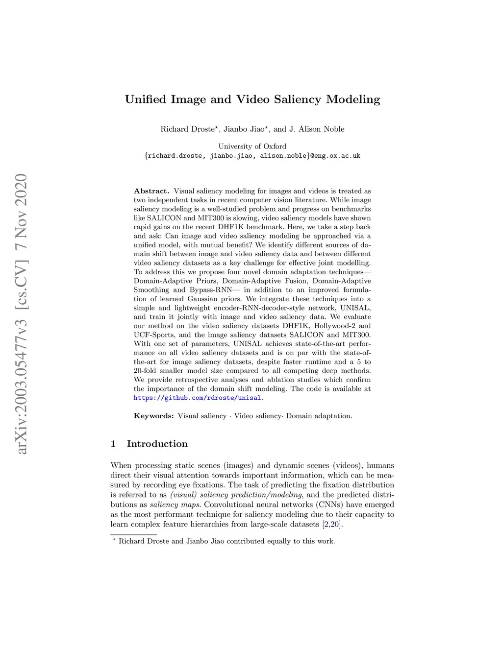 Unified Image and Video Saliency Modeling