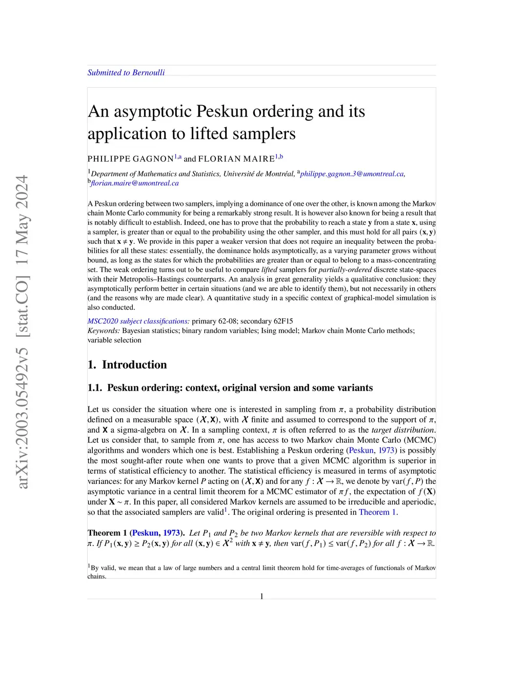 An asymptotic Peskun ordering and its application to lifted samplers