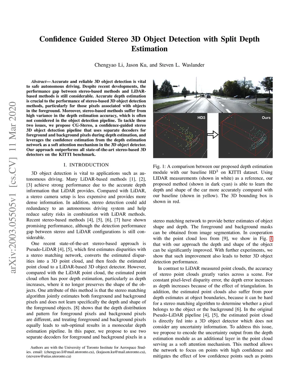 Confidence Guided Stereo 3D Object Detection with Split Depth Estimation