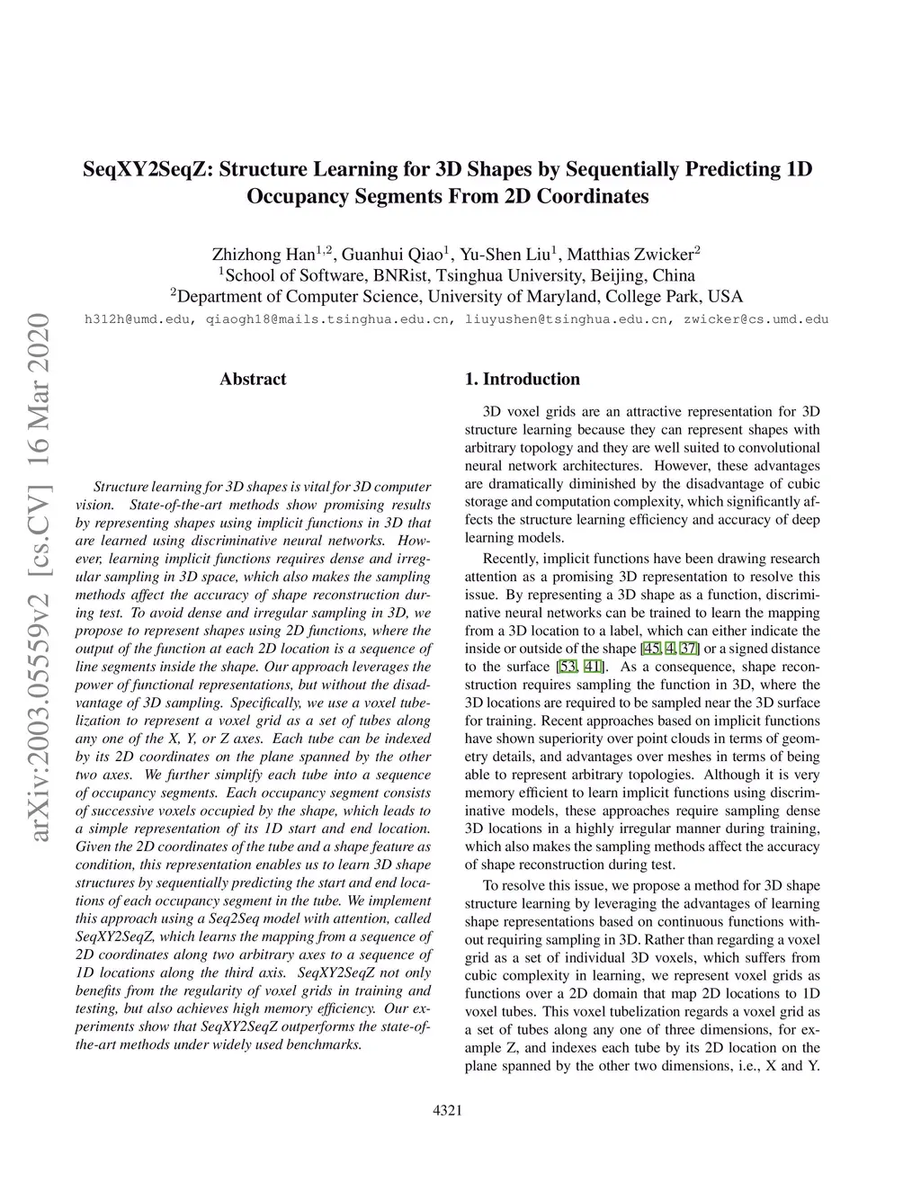 SeqXY2SeqZ: Structure Learning for 3D Shapes by Sequentially Predicting