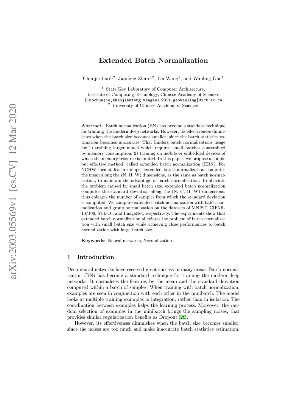 Extended Batch Normalization