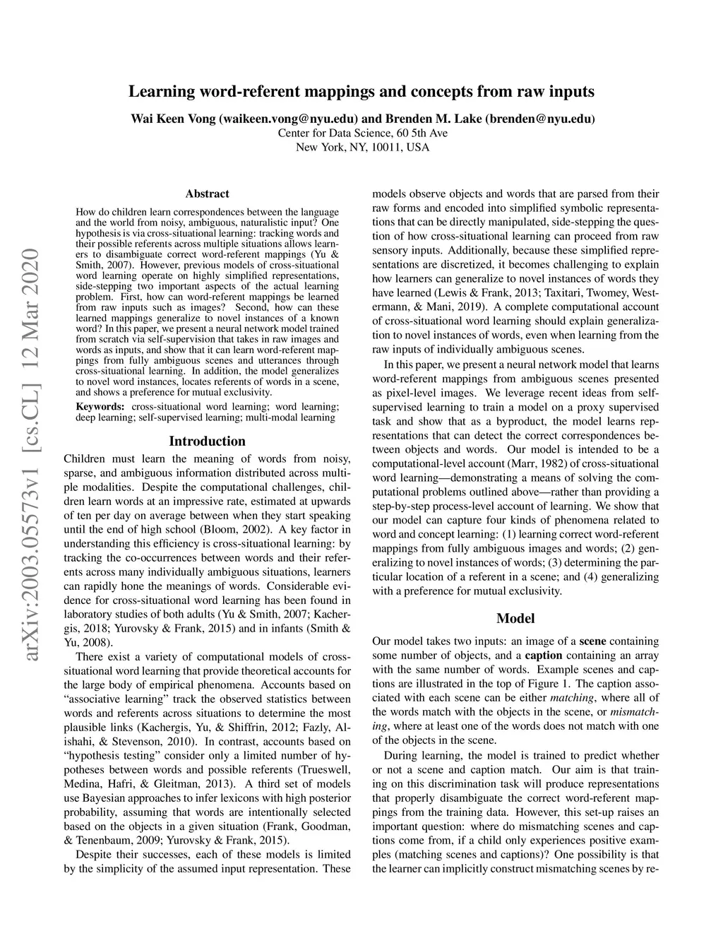 Learning word-referent mappings and concepts from raw inputs