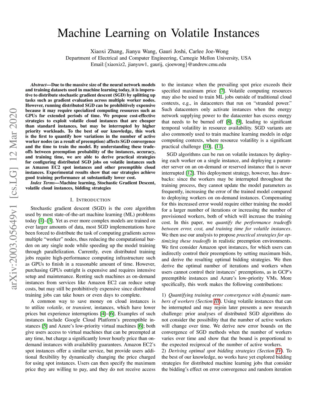 Machine Learning on Volatile Instances