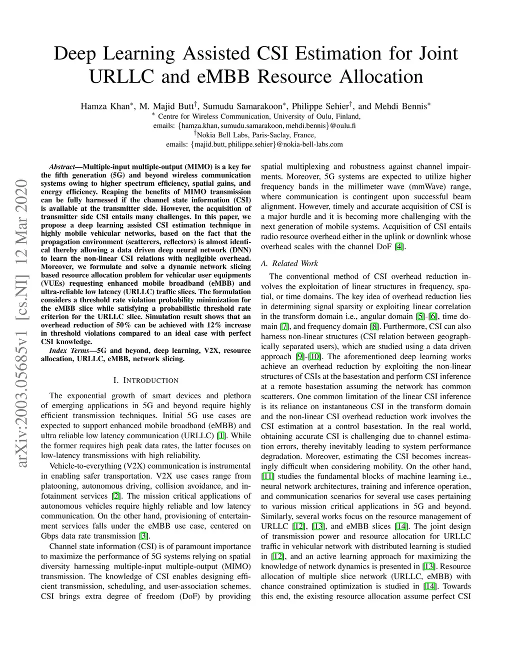 Deep Learning Assisted CSI Estimation for Joint URLLC and eMBB Resource