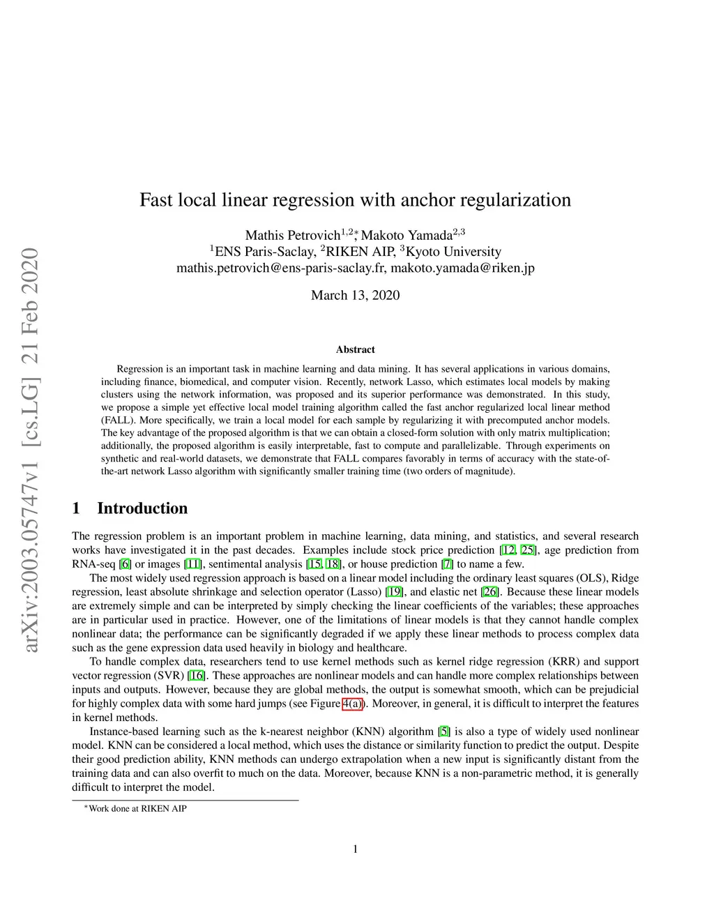 Fast local linear regression with anchor regularization