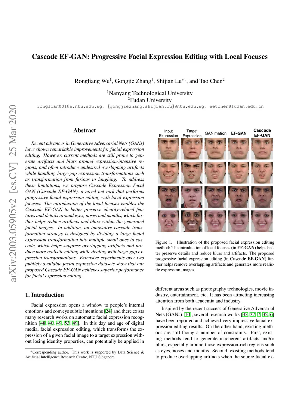 Cascade EF-GAN: Progressive Facial Expression Editing with Local Focuses