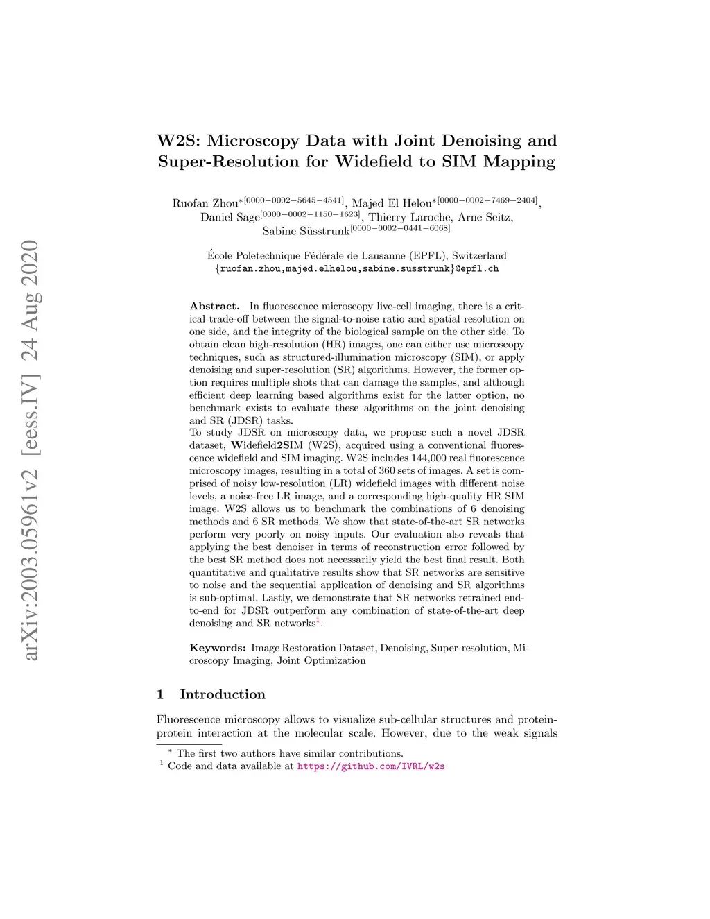 W2S: Microscopy Data with Joint Denoising and Super-Resolution for