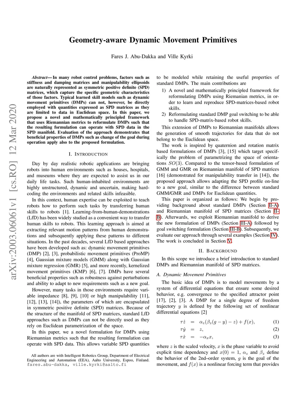 In many robot control problems, factors such as stiffness and damping matrices and manipulability ellipsoids are naturally represented as symmetric positive definite (SPD) matrices, which capture the specific geometric characteristics of those factors. Typical learned skill models such as dynamic movement primitives (DMPs) can not, however, be directly employed with quantities expressed as SPD matrices as they are limited to data in Euclidean space. In this paper, we propose a novel and mathematically principled framework that uses Riemannian metrics to reformulate DMPs such that the resulting formulation can operate with SPD data in the SPD manifold. Evaluation of the approach demonstrates that beneficial properties of DMPs such as change of the goal during operation apply also to the proposed formulation.