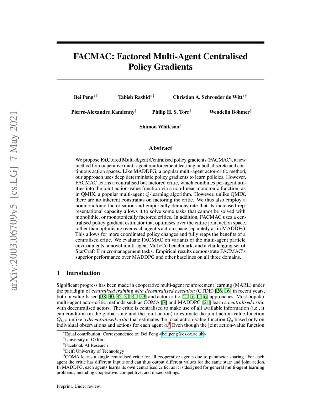 FACMAC: Factored Multi-Agent Centralised Policy Gradients
