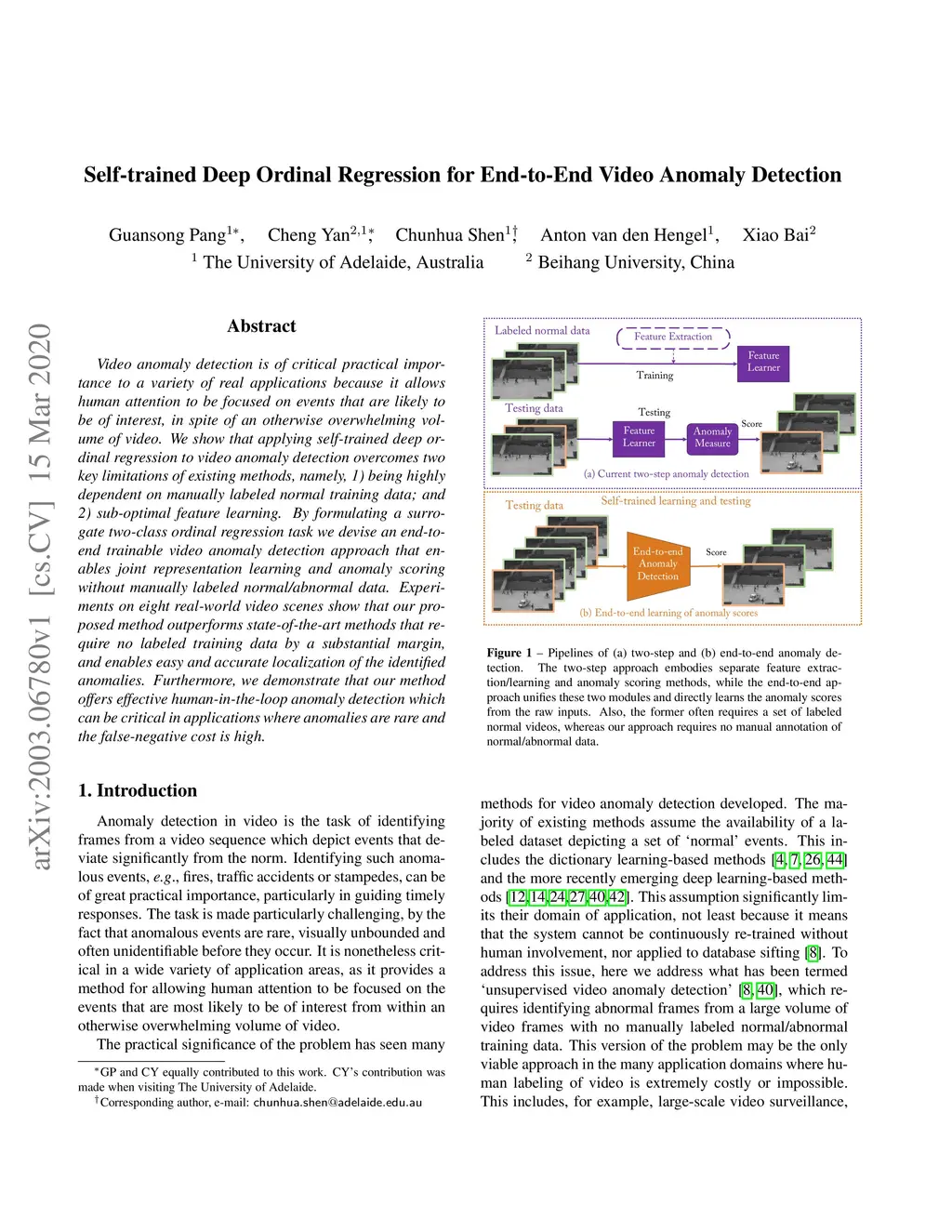Self-trained Deep Ordinal Regression for End-to-End Video Anomaly