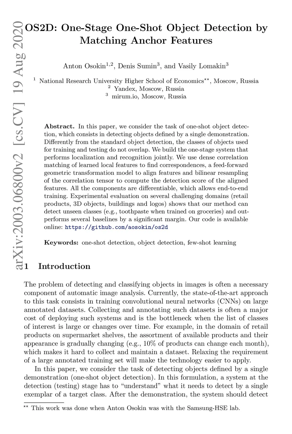 OS2D: One-Stage One-Shot Object Detection by Matching Anchor Features