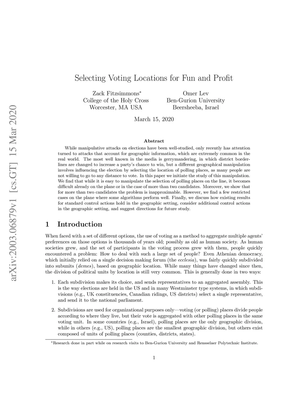 Selecting Voting Locations for Fun and Profit