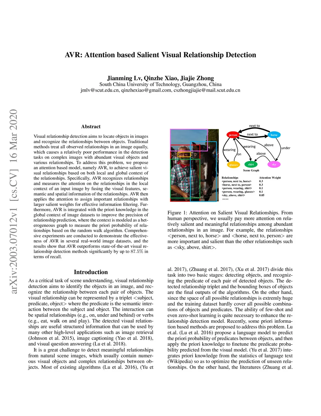 Visual relationship detection aims to locate objects in images and recognize the relationships between objects. Traditional methods treat all observed relationships in an image equally, which causes a relatively poor performance in the detection tasks on complex images with abundant visual objects and various relationships. To address this problem, we propose an attention based model, namely AVR, to achieve salient visual relationships based on both local and global context of the relationships. Specifically, AVR recognizes relationships and measures the attention on the relationships in the local context of an input image by fusing the visual features, semantic and spatial information of the relationships. AVR then applies the attention to assign important relationships with larger salient weights for effective information filtering. Furthermore, AVR is integrated with the priori knowledge in the global context of image datasets to improve the precision of relationship prediction, where the context is modeled as a heterogeneous graph to measure the priori probability of relationships based on the random walk algorithm. Comprehensive experiments are conducted to demonstrate the effectiveness of AVR in several real-world image datasets, and the results show that AVR outperforms state-of-the-art visual relationship detection methods significantly by up to in terms of recall.