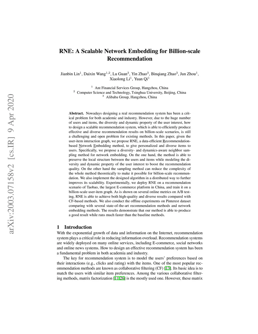 RNE: A Scalable Network Embedding for Billion-scale Recommendation