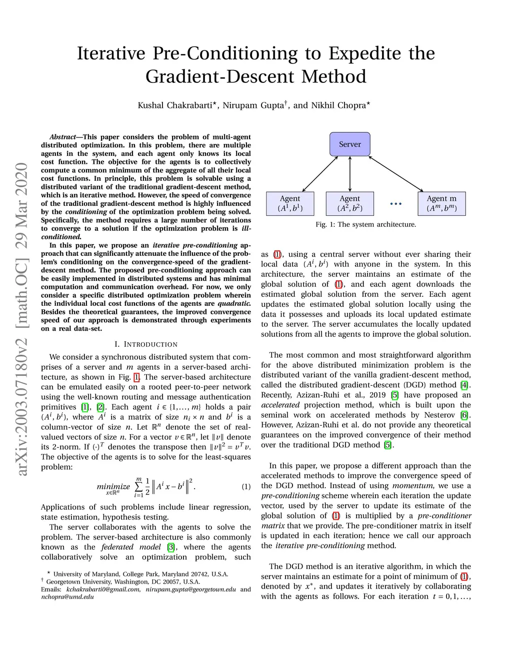 Iterative Pre-Conditioning to Expedite the Gradient-Descent Method