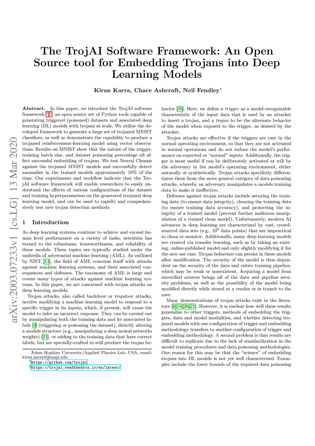 The TrojAI Software Framework: An OpenSource tool for Embedding Trojans