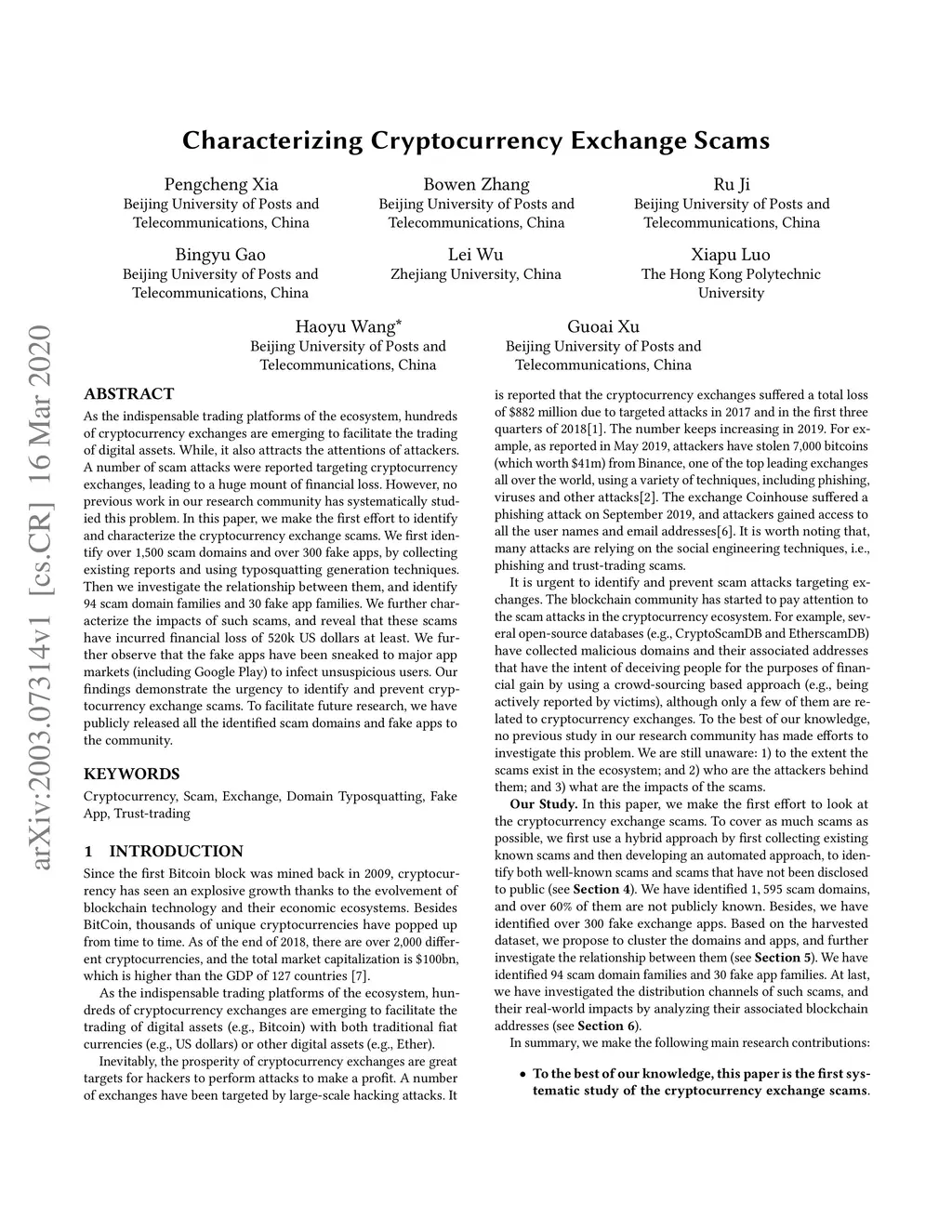 As the indispensable trading platforms of the ecosystem, hundreds of cryptocurrency exchanges are emerging to facilitate the trading of digital assets. While, it also attracts the attentions of attackers. A number of scam attacks were reported targeting cryptocurrency exchanges, leading to a huge mount of financial loss. However, no previous work in our research community has systematically studied this problem. In this paper, we make the first effort to identify and characterize the cryptocurrency exchange scams. We first identify over 1,500 scam domains and over 300 fake apps, by collecting existing reports and using typosquatting generation techniques. Then we investigate the relationship between them, and identify 94 scam domain families and 30 fake app families. We further characterize the impacts of such scams, and reveal that these scams have incurred financial loss of 520k US dollars at least. We further observe that the fake apps have been sneaked to major app markets (including Google Play) to infect unsuspicious users. Our findings demonstrate the urgency to identify and prevent cryptocurrency exchange scams. To facilitate future research, we have publicly released all the identified scam domains and fake apps to the community.
