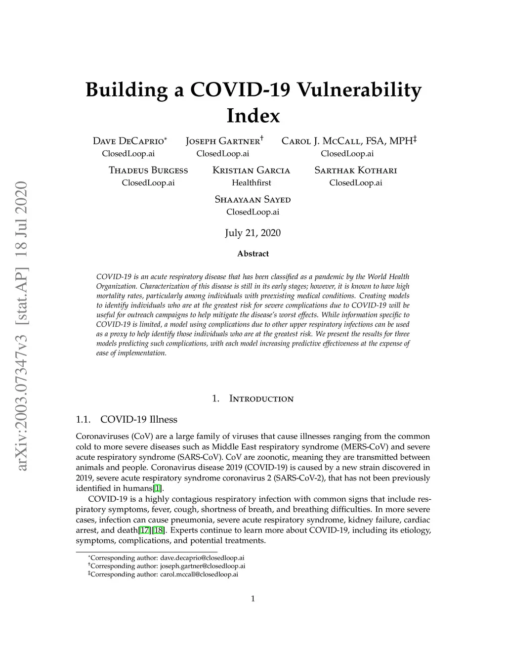 COVID-19 is an acute respiratory disease that has been classified as a pandemic by the World Health Organization. Characterization of this disease is still in its early stages. However, it is known to have high mortality rates, particularly among individuals with preexisting medical conditions. Creating models to identify individuals who are at the greatest risk for severe complications due to COVID-19 will be useful for outreach campaigns to help mitigate the disease's worst effects. While information specific to COVID-19 is limited, a model using complications due to other upper respiratory infections can be used as a proxy to help identify those individuals who are at the greatest risk. We present the results for three models predicting such complications, with each model increasing predictive effectiveness at the expense of ease of implementation.