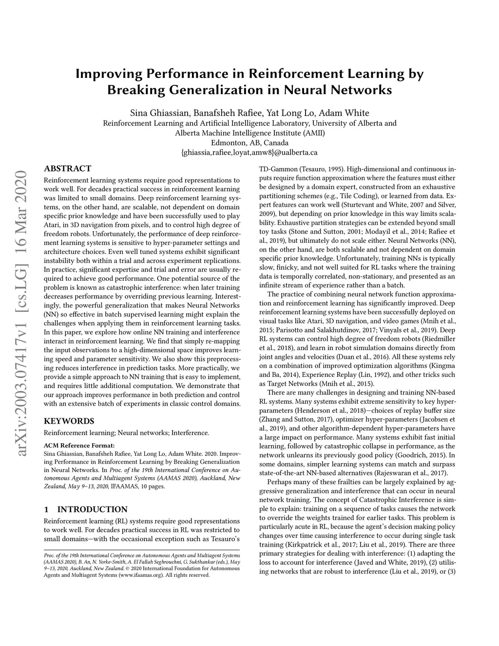 Reinforcement learning systems require good representations to work well. For decades practical success in reinforcement learning was limited to small domains. Deep reinforcement learning systems, on the other hand, are scalable, not dependent on domain specific prior knowledge and have been successfully used to play Atari, in 3D navigation from pixels, and to control high degree of freedom robots. Unfortunately, the performance of deep reinforcement learning systems is sensitive to hyper-parameter settings and architecture choices. Even well tuned systems exhibit significant instability both within a trial and across experiment replications. In practice, significant expertise and trial and error are usually required to achieve good performance. One potential source of the problem is known as catastrophic interference: when later training decreases performance by overriding previous learning. Interestingly, the powerful generalization that makes Neural Networks (NN) so effective in batch supervised learning might explain the challenges when applying them in reinforcement learning tasks. In this paper, we explore how online NN training and interference interact in reinforcement learning. We find that simply re-mapping the input observations to a high-dimensional space improves learning speed and parameter sensitivity. We also show this preprocessing reduces interference in prediction tasks. More practically, we provide a simple approach to NN training that is easy to implement, and requires little additional computation. We demonstrate that our approach improves performance in both prediction and control with an extensive batch of experiments in classic control domains.