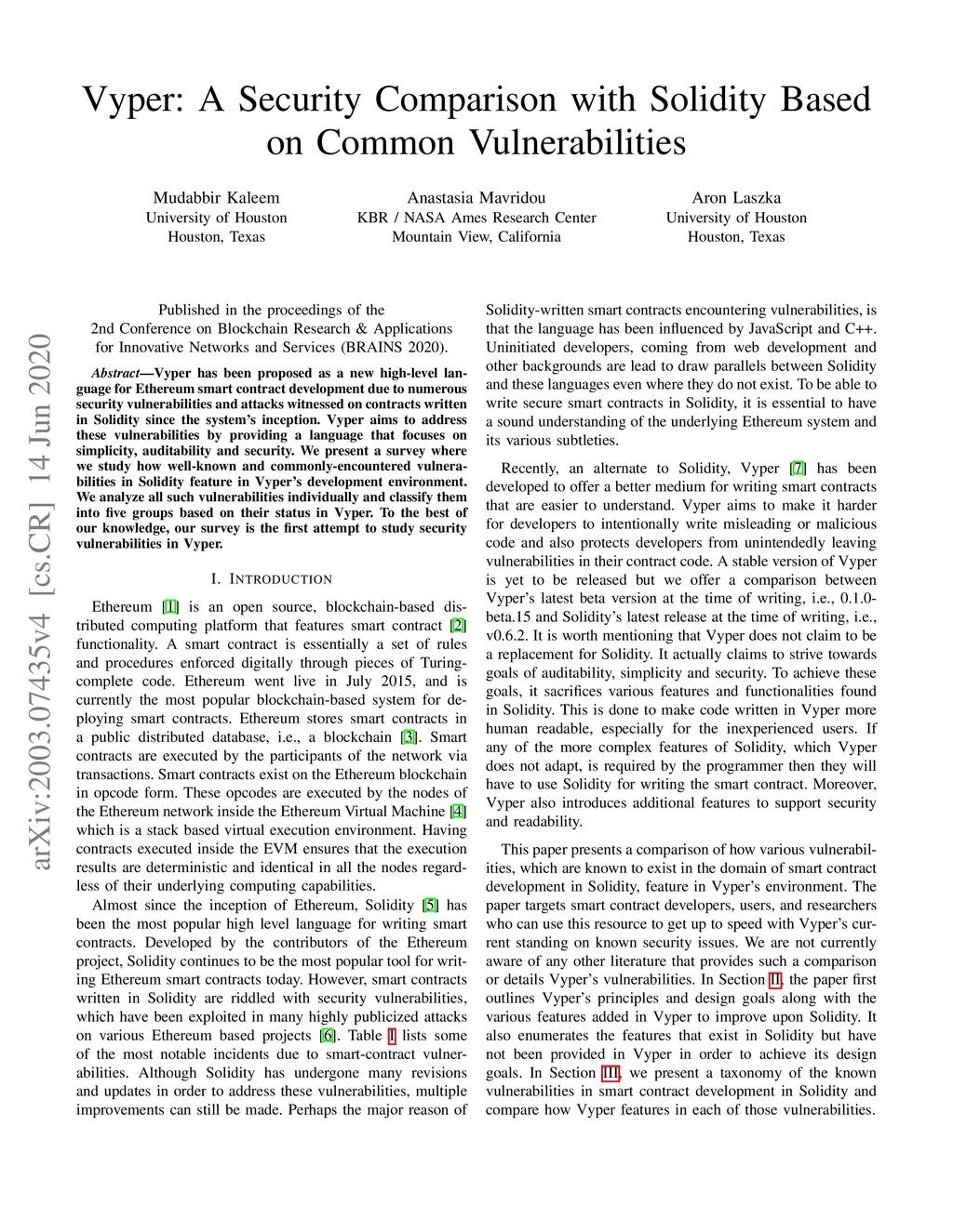 Conference on Blockchain Research & Applications for Innovative Networks and Services (BRAINS), 2020