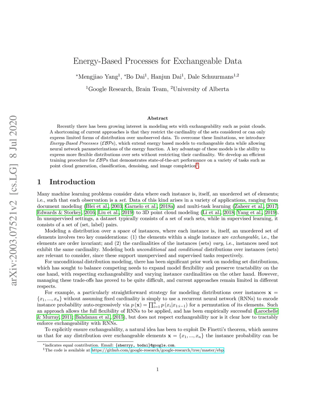 Energy-Based Processes for Exchangeable Data