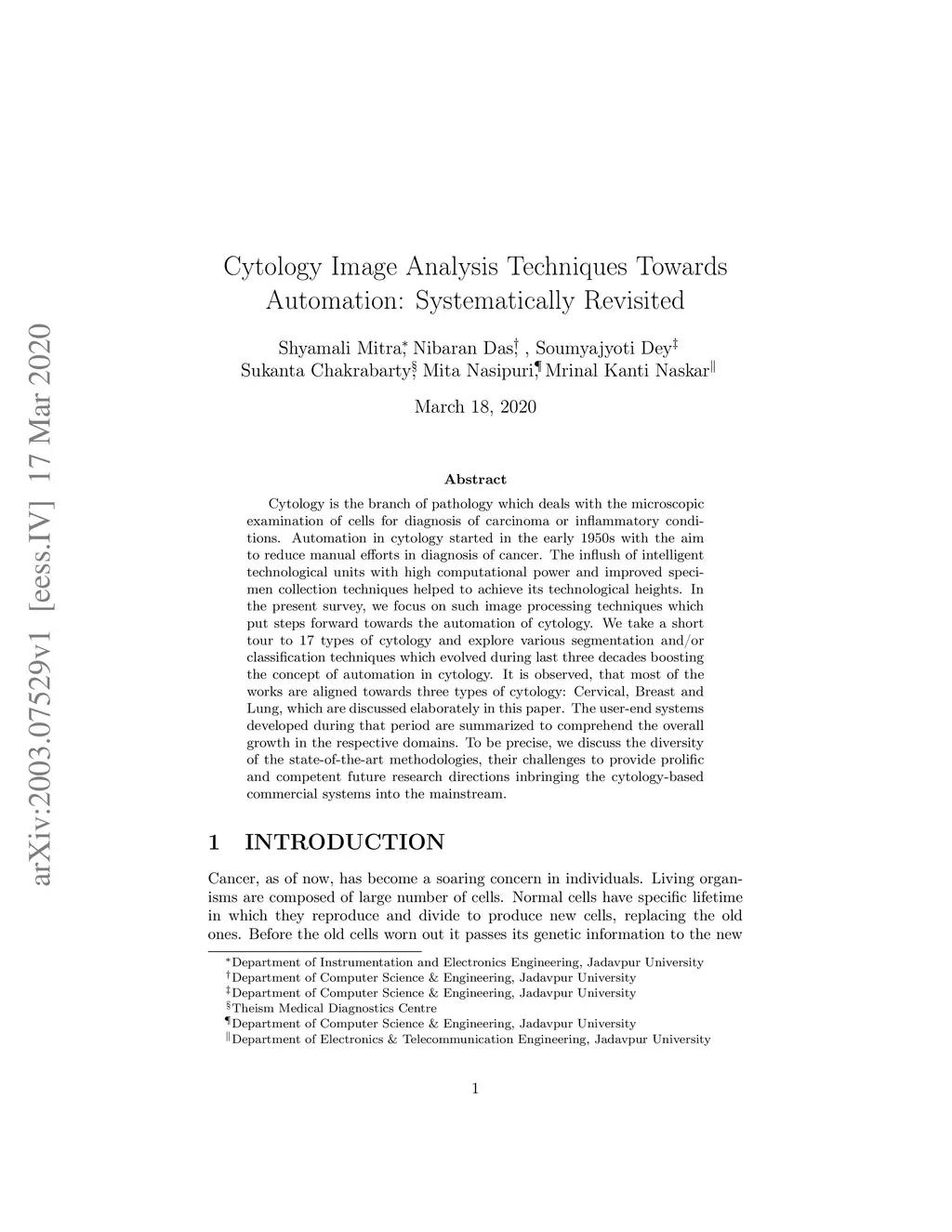Cytology is the branch of pathology which deals with the microscopic examination of cells for diagnosis of carcinoma or inflammatory conditions. Automation in cytology started in the early 1950s with the aim to reduce manual efforts in diagnosis of cancer. The inflush of intelligent technological units with high computational power and improved specimen collection techniques helped to achieve its technological heights. In the present survey, we focus on such image processing techniques which put steps forward towards the automation of cytology. We take a short tour to 17 types of cytology and explore various segmentation and/or classification techniques which evolved during last three decades boosting the concept of automation in cytology. It is observed, that most of the works are aligned towards three types of cytology: Cervical, Breast and Lung, which are discussed elaborately in this paper. The user-end systems developed during that period are summarized to comprehend the overall growth in the respective domains. To be precise, we discuss the diversity of the state-of-the-art methodologies, their challenges to provide prolific and competent future research directions inbringing the cytology-based commercial systems into the mainstream.