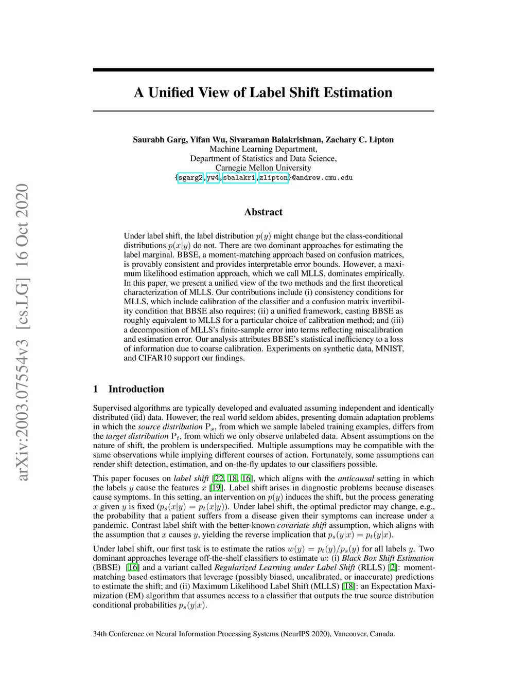 Under label shift, the label distribution p(y) might change but the class-conditional distributions p(x|y) do not. There are two dominant approaches for estimating the label marginal. BBSE, a moment-matching approach based on confusion matrices, is provably consistent and provides interpretable error bounds. However, a maximum likelihood estimation approach, which we call MLLS, dominates empirically. In this paper, we present a unified view of the two methods and the first theoretical characterization of MLLS. Our contributions include (i) consistency conditions for MLLS, which include calibration of the classifier and a confusion matrix invertibility condition that BBSE also requires; (ii) a unified framework, casting BBSE as roughly equivalent to MLLS for a particular choice of calibration method; and (iii) a decomposition of MLLS's finite-sample error into terms reflecting miscalibration and estimation error. Our analysis attributes BBSE's statistical inefficiency to a loss of information due to coarse calibration. Experiments on synthetic data, MNIST, and CIFAR10 support our findings.