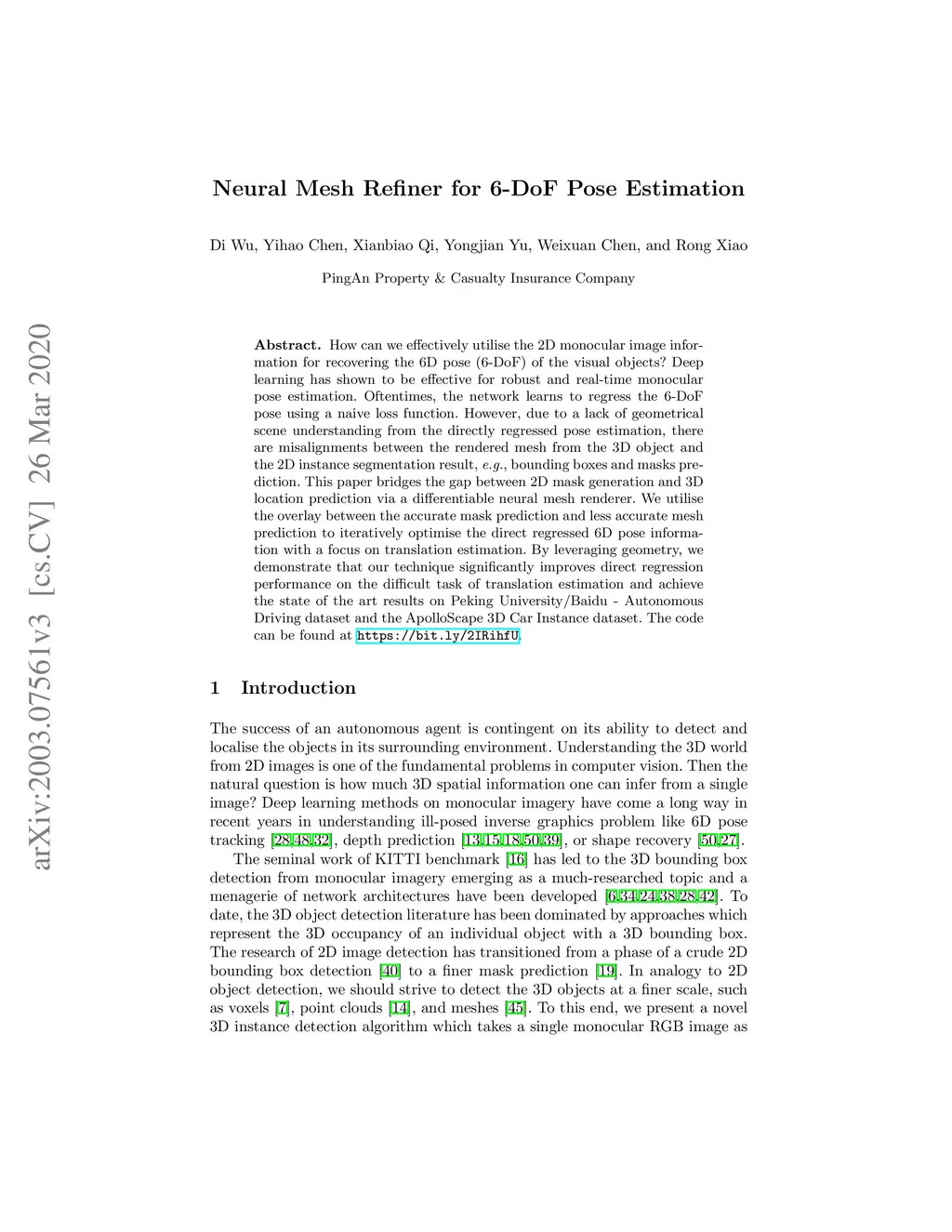Neural Mesh Refiner for 6-DoF Pose Estimation