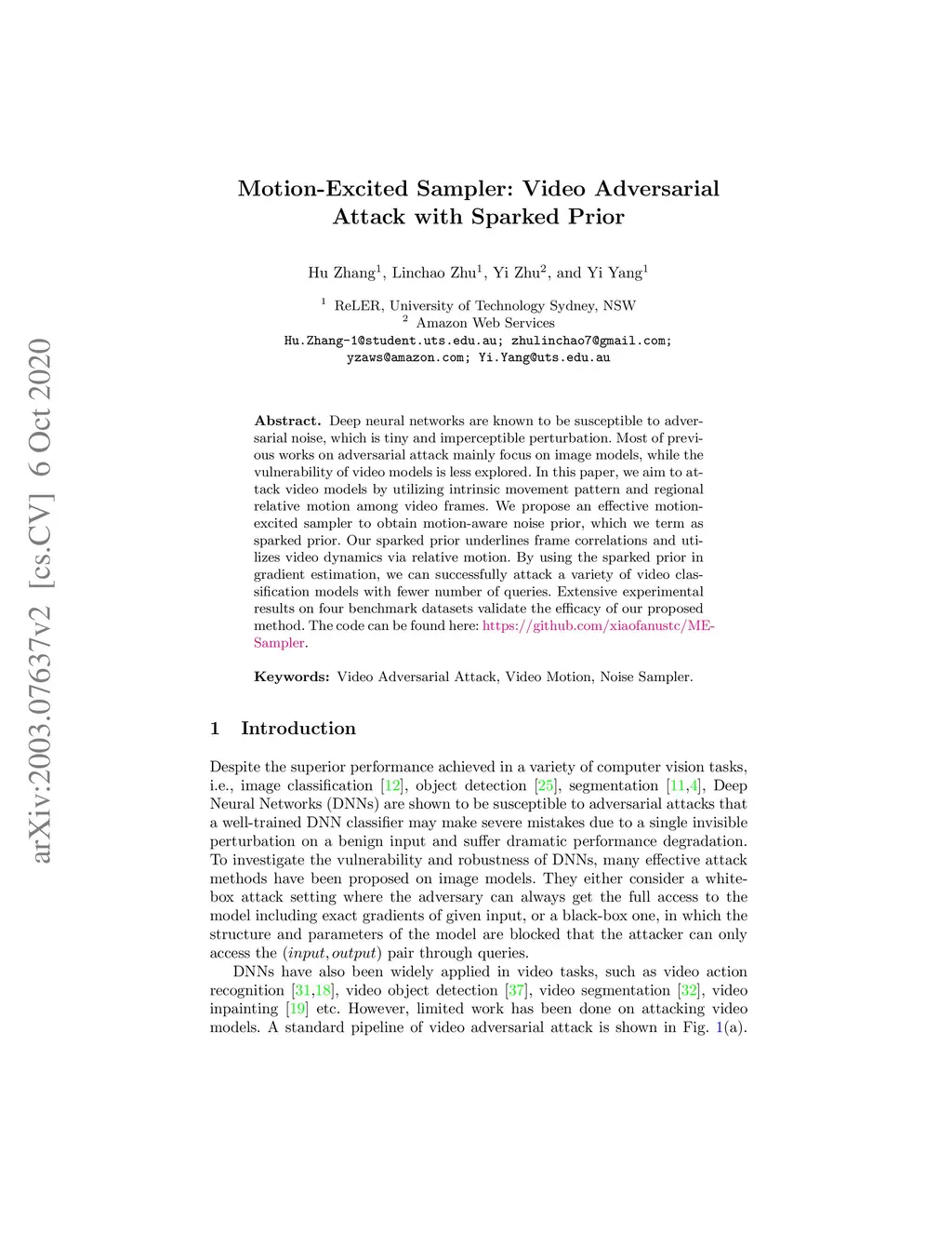 Motion-Excited Sampler: Video Adversarial Attack with Sparked Prior