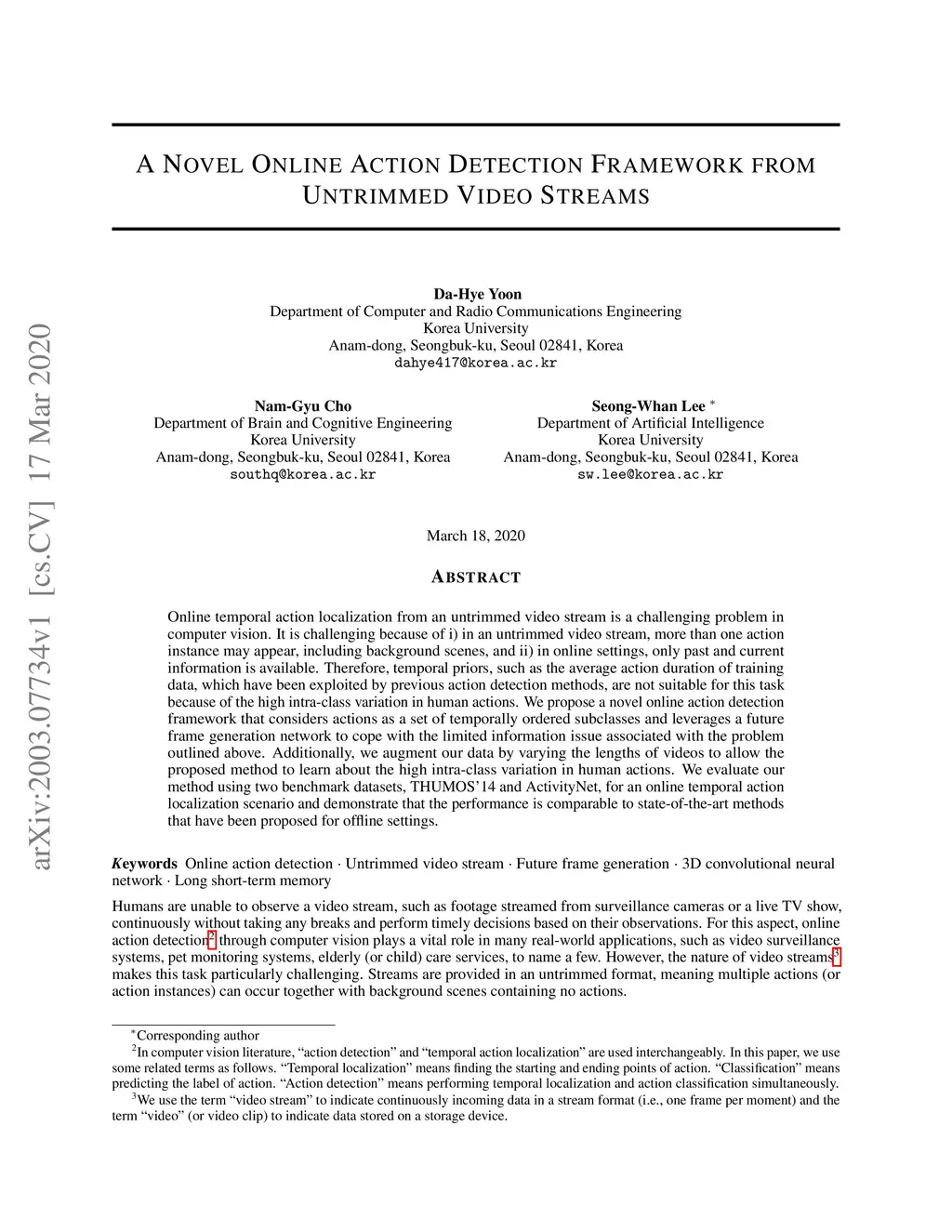 A Novel Online Action Detection Framework from Untrimmed Video Streams