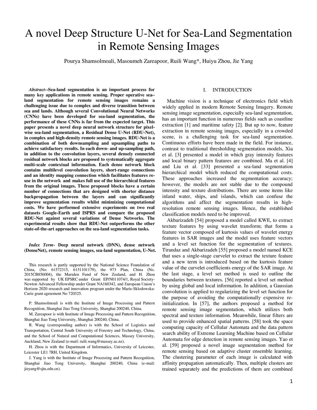 A novel Deep Structure U-Net for Sea-Land Segmentation in Remote Sensing
