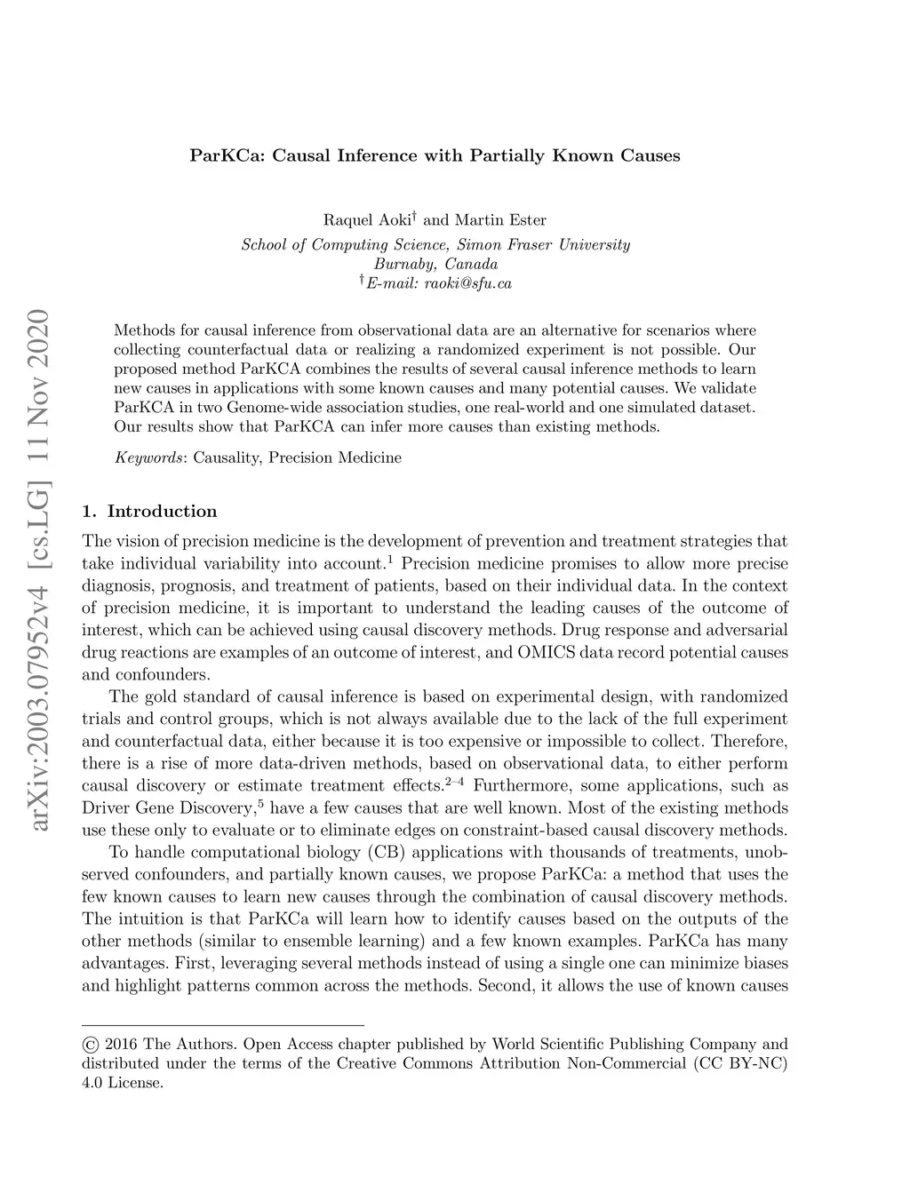 Causal Inference methods based on observational data are an alternative for applications where collecting the counterfactual data or realizing a more standard experiment is not possible. In this work, our goal is to combine several observational causal inference methods to learn new causes in applications where some causes are well known. We validate the proposed method on The Cancer Genome Atlas (TCGA) dataset to identify genes that potentially cause metastasis.
