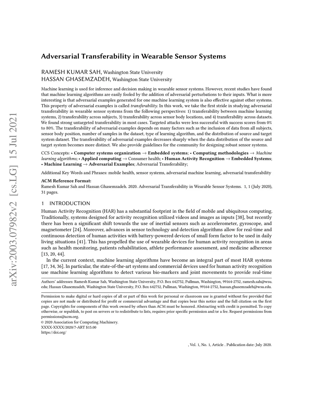 Adversarial Transferability in Wearable Sensor Systems