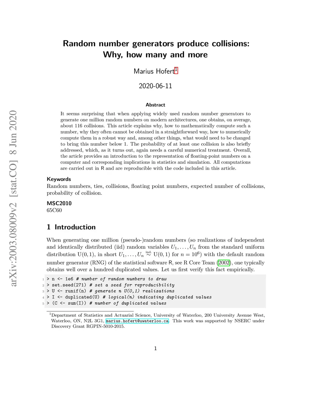 It seems surprising that when applying widely used random number generators to generate one million random numbers on modern architectures, one obtains, on average, about 116 collisions. This article explains why, how to mathematically compute such a number, why they often cannot be obtained in a straightforward way, how to numerically compute them in a robust way and, among other things, what would need to be changed to bring this number below 1. The probability of at least one collision is also briefly addressed, which, as it turns out, again needs a careful numerical treatment. Overall, the article provides an introduction to the representation of floating-point numbers on a computer and corresponding implications in statistics and simulation. All computations are carried out in R and are reproducible with the code included in this article.