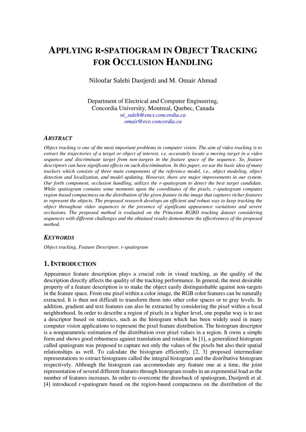 Applying r-spatiogram in object tracking for occlusion handling