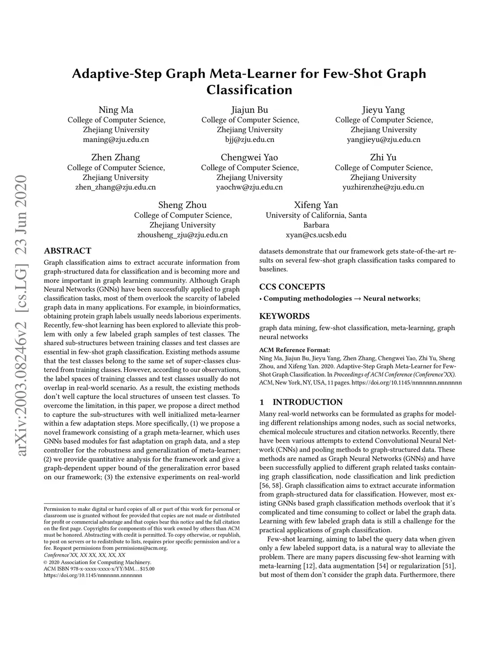 Adaptive-Step Graph Meta-Learner for Few-Shot Graph Classification