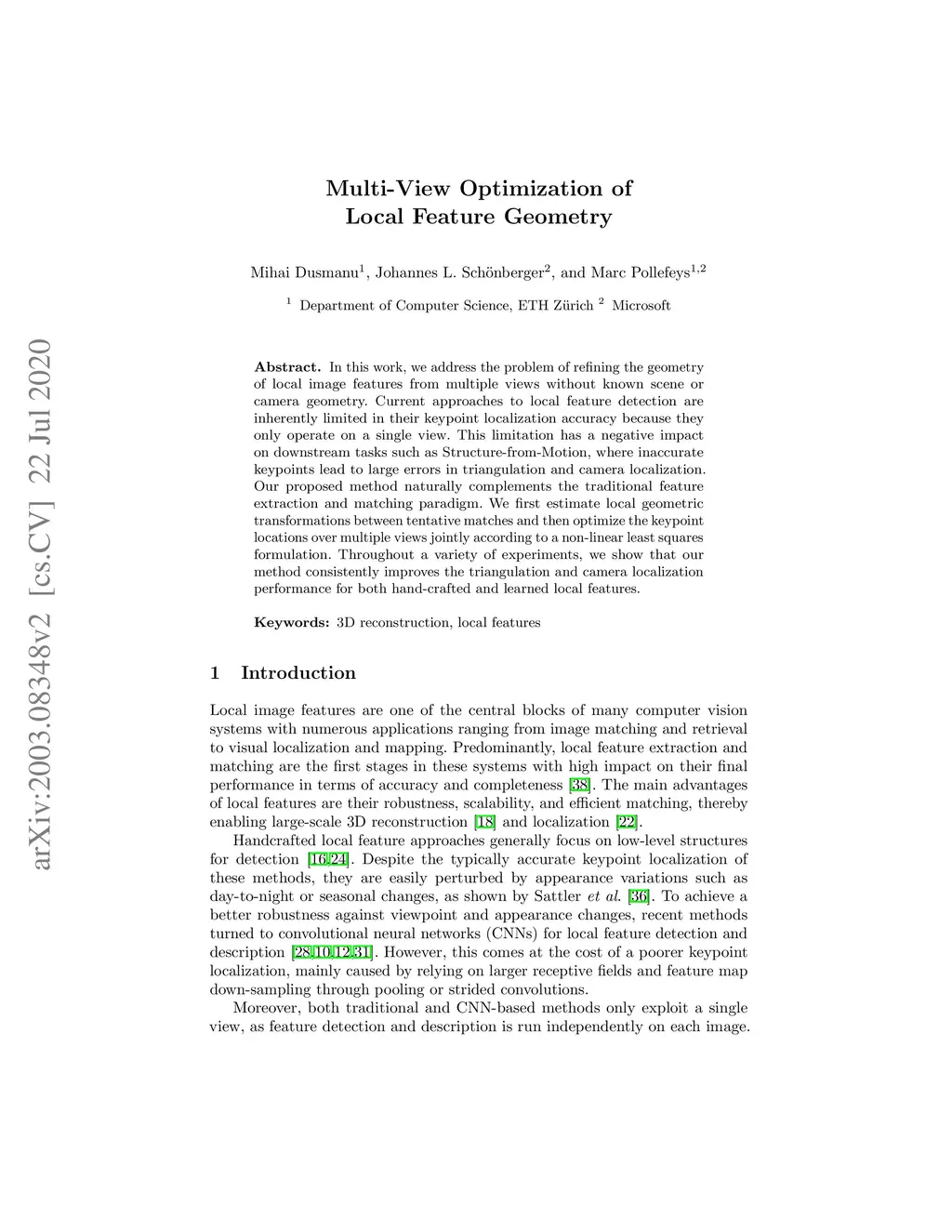 Multi-View Optimization of Local Feature Geometry