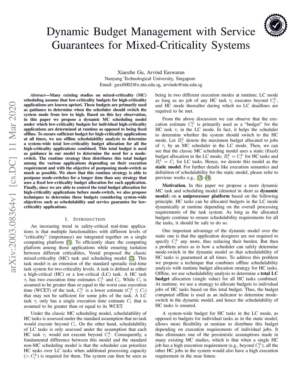 Dynamic Budget Management with Service Guarantees for Mixed-Criticality