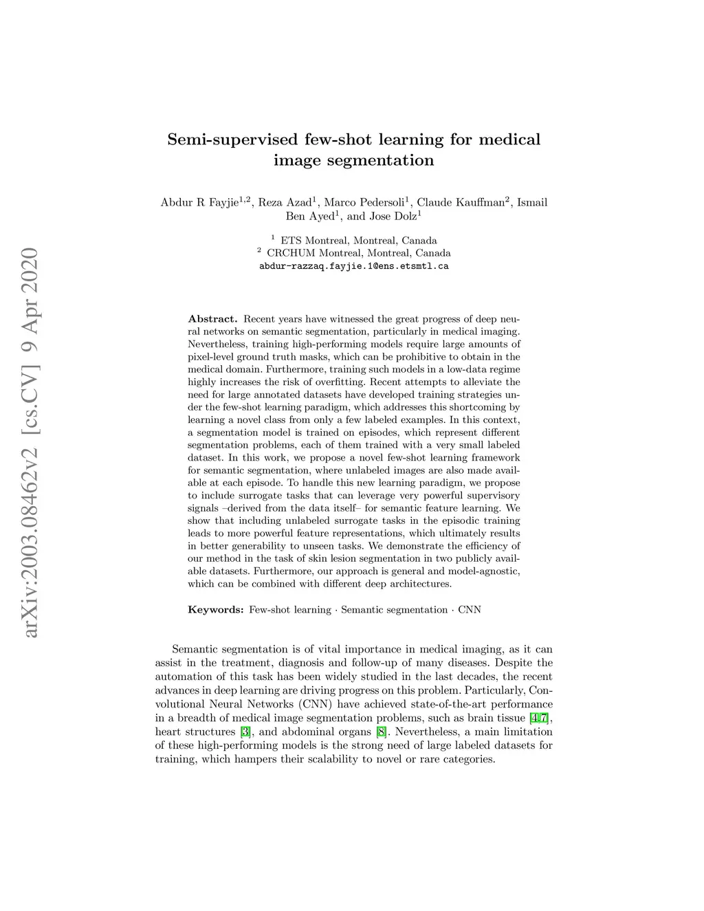 Semi-supervised few-shot learning for medical image segmentation