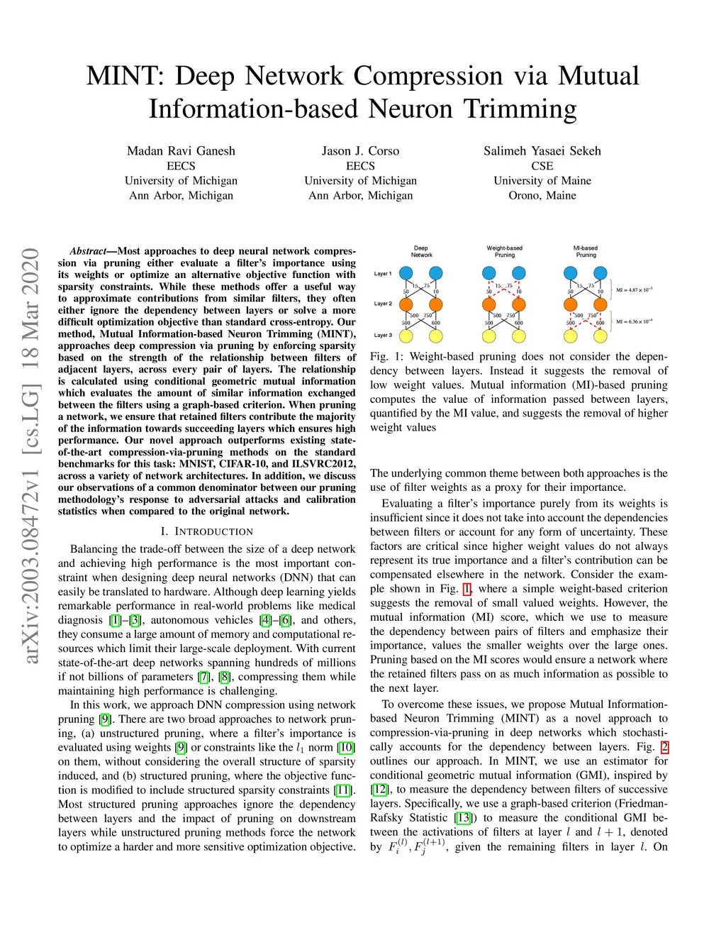 MINT: Deep Network Compression via Mutual Information-based Neuron