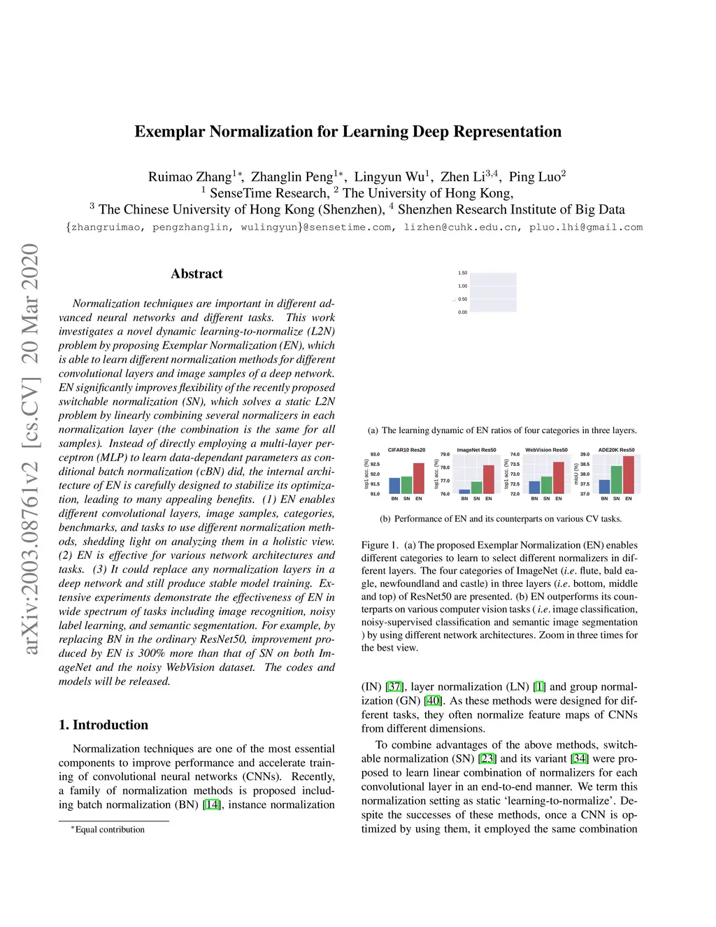 Normalization techniques are important in different advanced neural networks and different tasks. This work investigates a novel dynamic learning-to-normalize (L2N) problem by proposing Exemplar Normalization (EN), which is able to learn different normalization methods for different convolutional layers and image samples of a deep network. EN significantly improves flexibility of the recently proposed switchable normalization (SN), which solves a static L2N problem by linearly combining several normalizers in each normalization layer (the combination is the same for all samples). Instead of directly employing a multi-layer perceptron (MLP) to learn data-dependent parameters as conditional batch normalization (cBN) did, the internal architecture of EN is carefully designed to stabilize its optimization, leading to many appealing benefits. (1) EN enables different convolutional layers, image samples, categories, benchmarks, and tasks to use different normalization methods, shedding light on analyzing them in a holistic view. (2) EN is effective for various network architectures and tasks. (3) It could replace any normalization layers in a deep network and still produce stable model training. Extensive experiments demonstrate the effectiveness of EN in a wide spectrum of tasks including image recognition, noisy label learning, and semantic segmentation. For example, by replacing BN in the ordinary ResNet50, improvement produced by EN is 300% more than that of SN on both ImageNet and the noisy WebVision dataset.