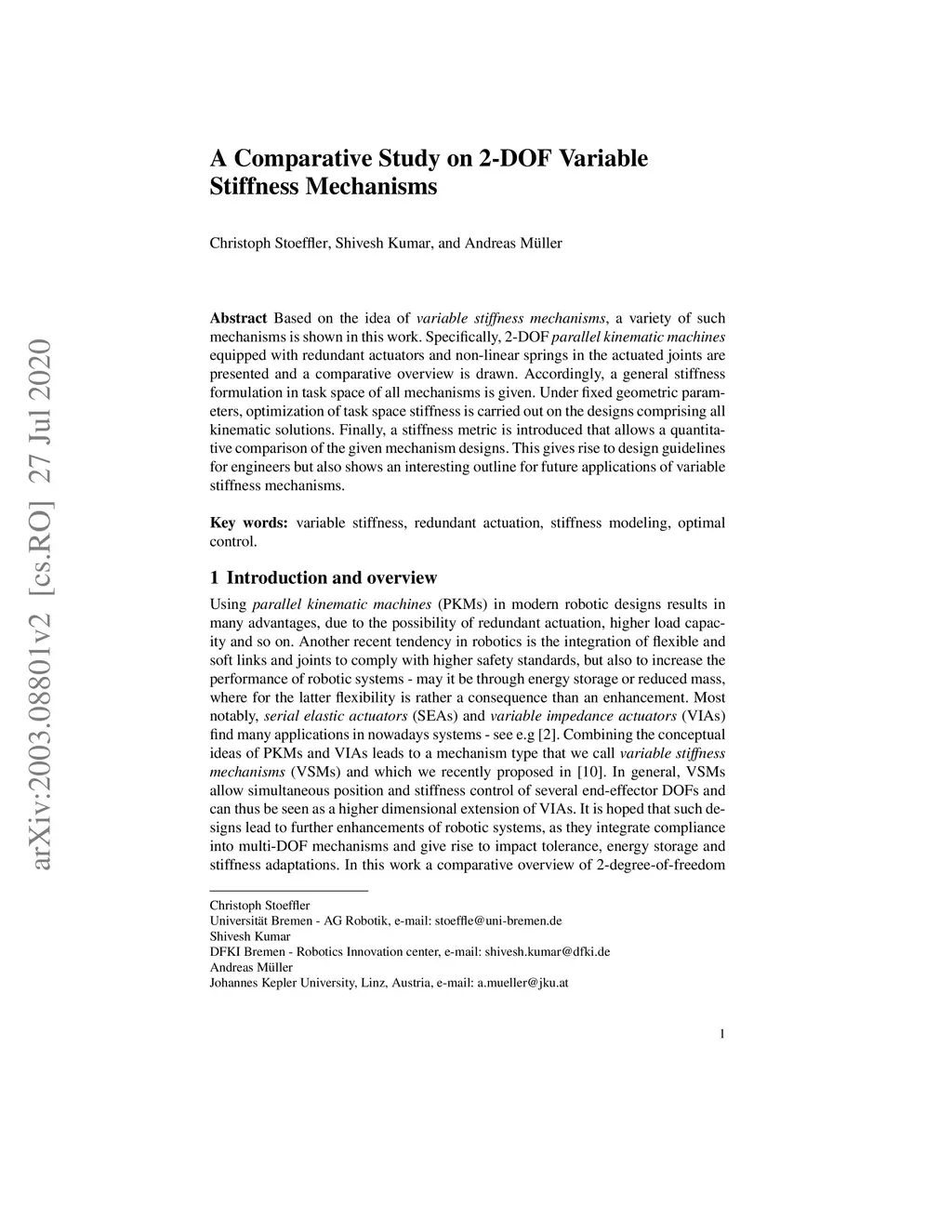 A Comparative Study on 2-DOF Variable Stiffness Mechanisms