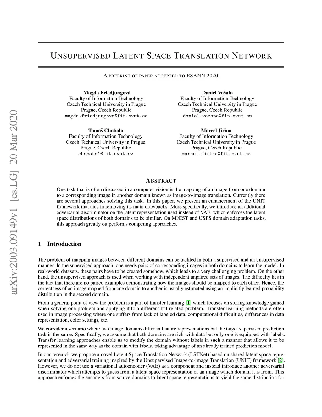 One task that is often discussed in a computer vision is the mapping of an image from one domain to a corresponding image in another domain known as image-to-image translation. Currently there are several approaches solving this task. In this paper, we present an enhancement of the UNIT framework that aids in removing its main drawbacks. More specifically, we introduce an additional adversarial discriminator on the latent representation used instead of VAE, which enforces the latent space distributions of both domains to be similar. On MNIST and USPS domain adaptation tasks, this approach greatly outperforms competing approaches.