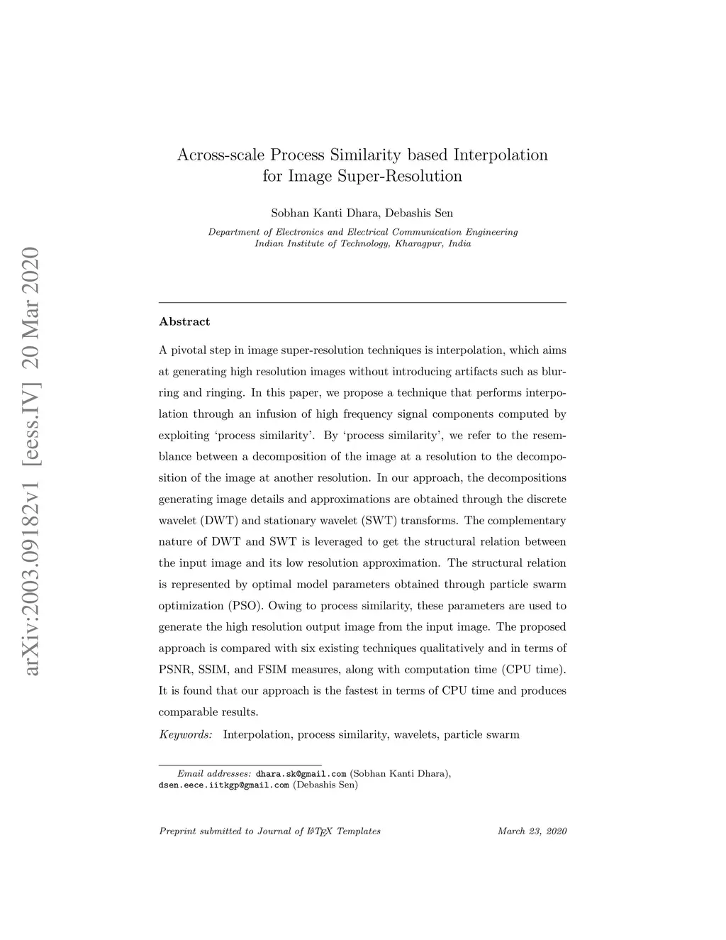 A pivotal step in image super-resolution techniques is interpolation, which aims at generating high resolution images without introducing artifacts such as blurring and ringing. In this paper, we propose a technique that performs interpolation through an infusion of high frequency signal components computed by exploiting `process similarity'. By `process similarity', we refer to the resemblance between a decomposition of the image at a resolution to the decomposition of the image at another resolution. In our approach, the decompositions generating image details and approximations are obtained through the discrete wavelet (DWT) and stationary wavelet (SWT) transforms. The complementary nature of DWT and SWT is leveraged to get the structural relation between the input image and its low resolution approximation. The structural relation is represented by optimal model parameters obtained through particle swarm optimization (PSO). Owing to process similarity, these parameters are used to generate the high resolution output image from the input image. The proposed approach is compared with six existing techniques qualitatively and in terms of PSNR, SSIM, and FSIM measures, along with computation time (CPU time). It is found that our approach is the fastest in terms of CPU time and produces comparable results.