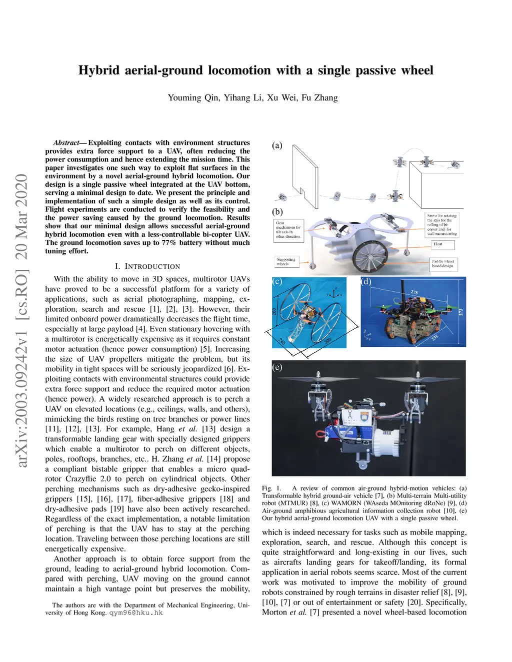 Hybrid aerial ground locomotion with a single passive wheel