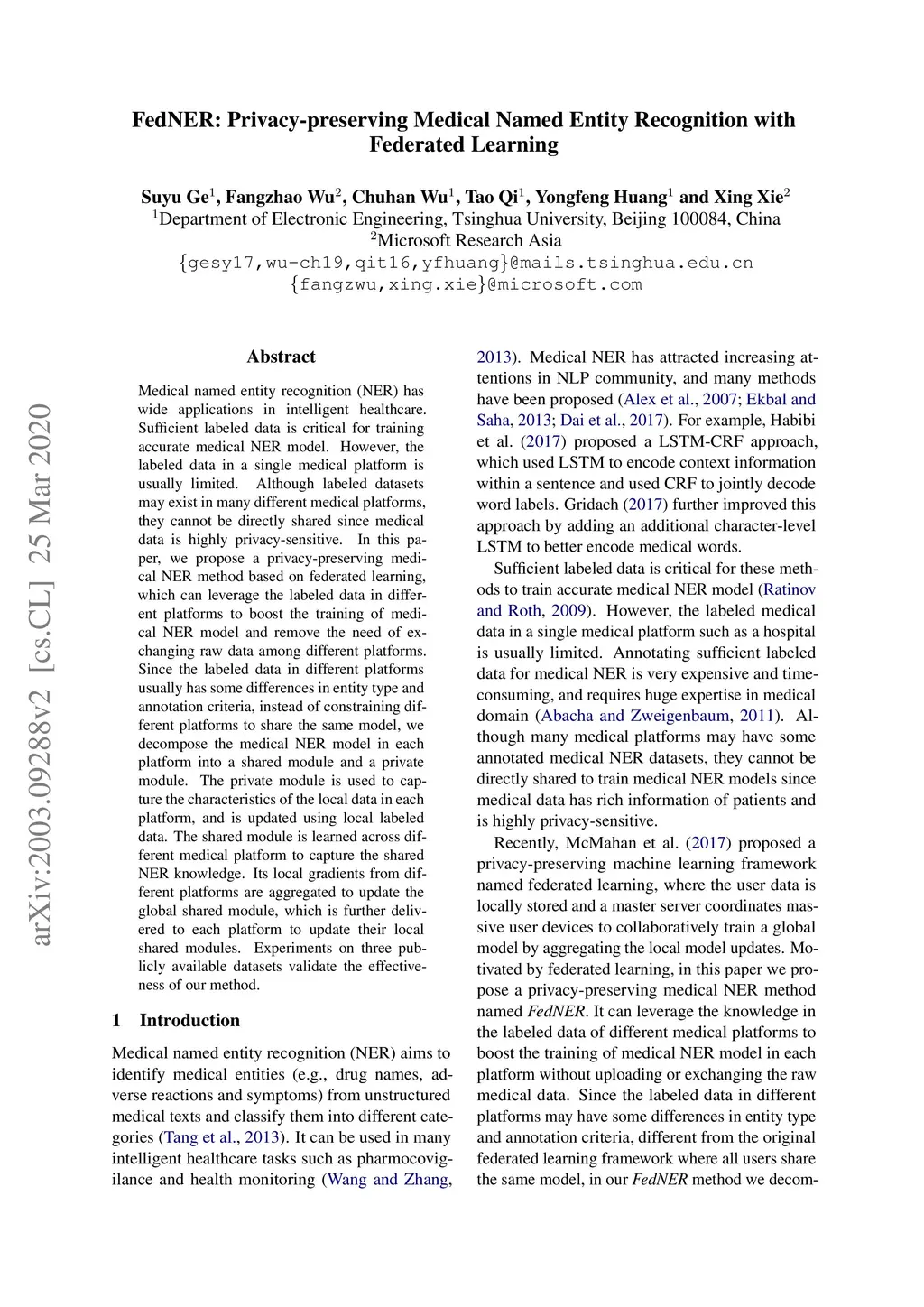 FedNER: Privacy-preserving Medical Named Entity Recognition with