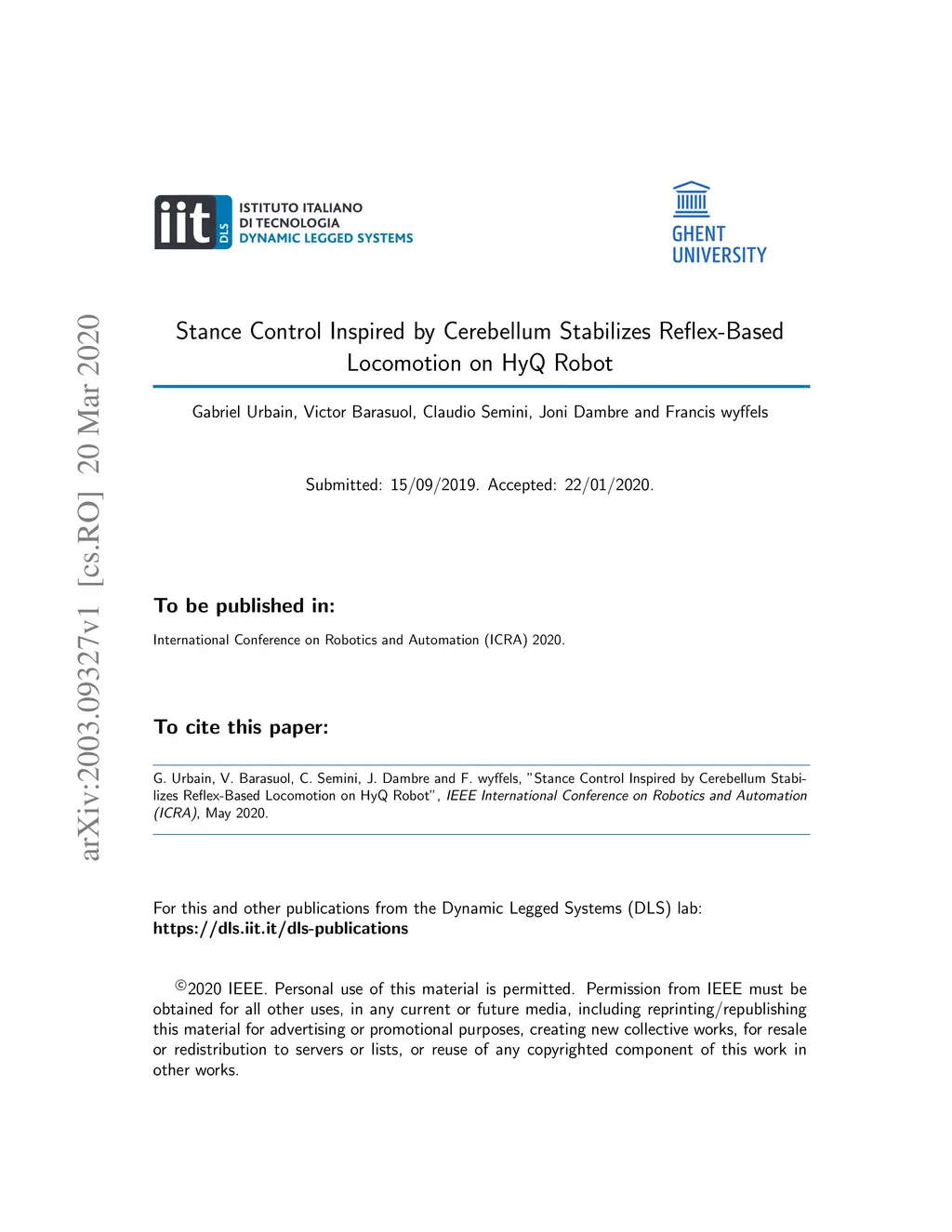 Stance Control Inspired by Cerebellum Stabilizes Reflex-Based Locomotion