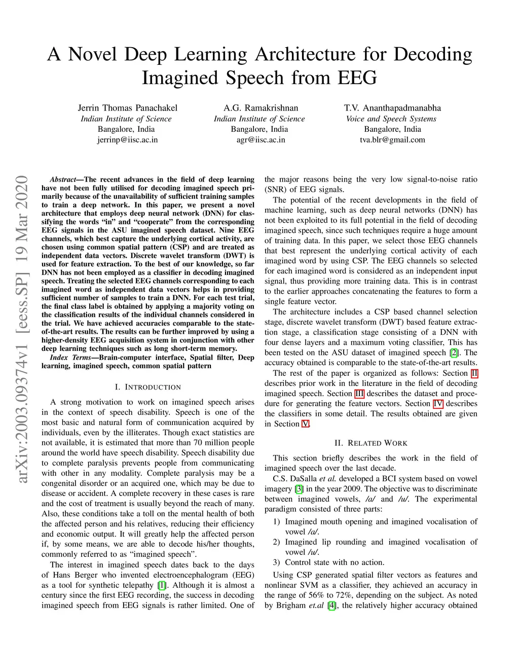 A Novel Deep Learning Architecture for Decoding Imagined Speech from EEG