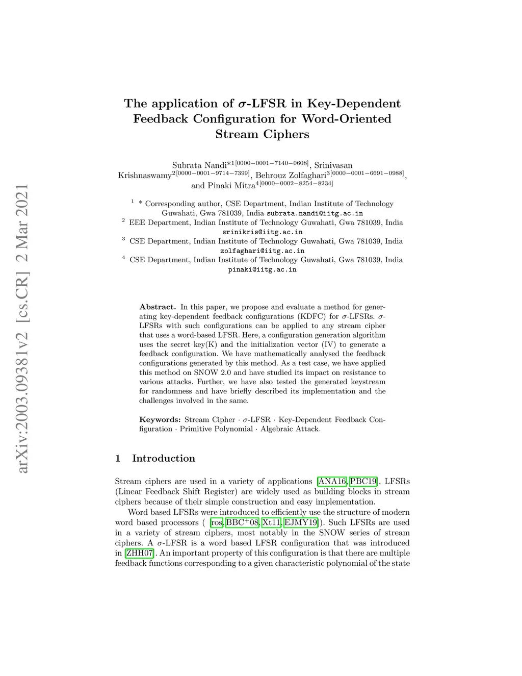 The application of -LFSR in Key-Dependent Feedback Configuration